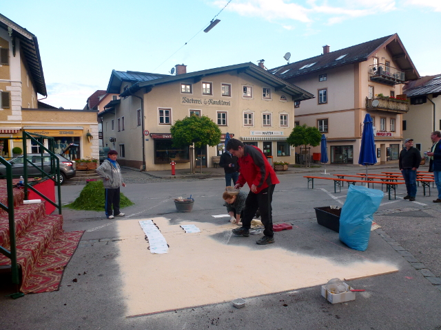 Das Logo des diesjährigen Altarteppich bei der Fronleichnamsprozession 2016 in Miesbach.