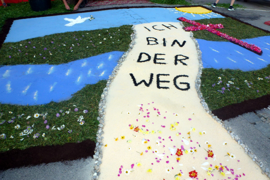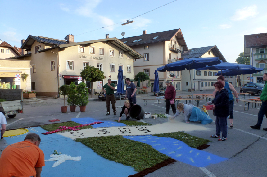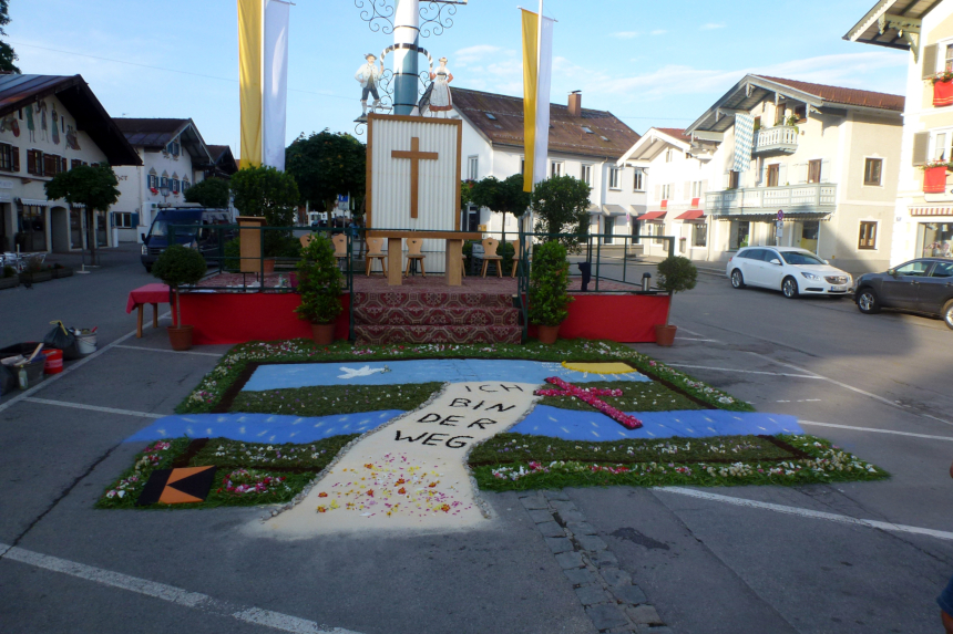 Wiedereinmal ist es geschafft. Vielen Dank an die vielen Helfer, beim Aufbau des Altars und beim gestalten des Blumenteppichs.