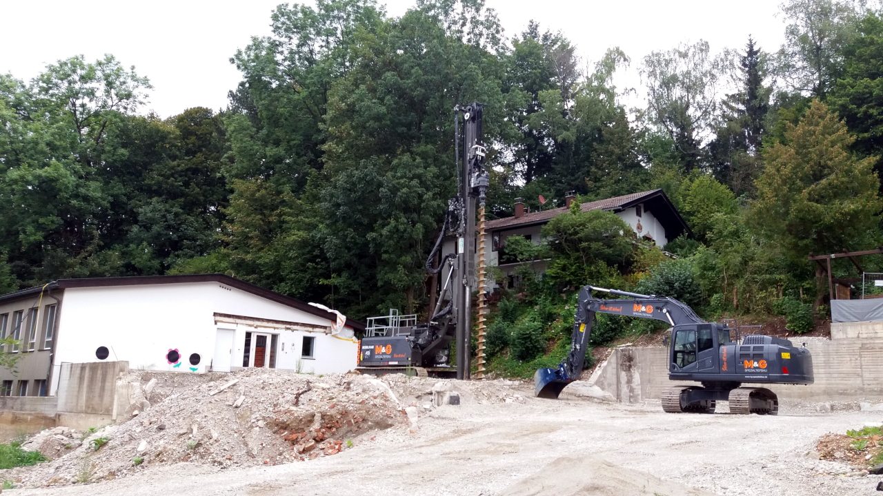Bagger und ein Bohrgerät sind eingetroffen.
